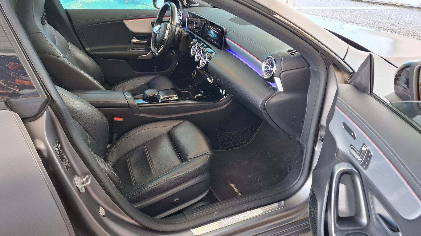 ABS, ESP, Control de Tracción TCS, Airbag de rodillas, Windowbags, Airbags frontales para conductor y acompañante, Control presión neumáticos, ATTENTION ASSIST, Airbag lateral para conductor y acompañante (airbag combinado de tórax y de cadera), Detector activo de cambio de carril, Llamada de emergencia Mercedes-Benz, Desconexión automática del airbag del acompañante, Servofreno de emergencia activo, Attention assist (Sistema de alerta por cansancio conductor), Asistente de frenado activo con función de girar, Cámara de marcha atrás, Elevalunas eléctricos delanteros y traseros, Sensor de lluvia, Función de parada y arranque ECO, Asistente para viento lateral, Cierre centralizado, Alfombrillas de velours negro con ribete en el color del equipamiento y distintivo «Mercedes-Benz», Función de arranque KEYLESS-GOSERIETEMPOMAT con limitador variable de velocidad, Freno anticolisión múltiple, Símil de cuero ARTICO /Tela Fleron, Apoyabrazos abatibles en consola central para conductor y acompañante, Caja de enchufe de 12 V en el compartimento portaobjetos, Iluminación del compartimento de carga (maletero), Portavasos doble, Portavasos doble y guantera (sin cerradura), Símil de cuero ARTICO / tela Bertrix negro (311A), Dirección directa, Paquete de alumbrado y visibilidad, Símil de cuero ARTICO /Tela Fleron, Símil de cuero ARTICO /Tela Fleron, AMG Line, Listones de umbral con distintivo Mercedes-Benz, Tirefit con compresor para inflado de los neumáticos, Elementos de adorno con efecto carbono, 8G-DCT cambio automático de doble embrague, Llantas de aleación de 45,7 cm (18′) y 10 radios dobles color negro brillante y pulidas, Compartimento de gafas para conductor, DYNAMIC SELECT con los programas de conducción ECO, Comfort, Sport e Individual, Guantera con cerradura, Airpanel, Faldón trasero de dos piezas con sección inferior destacada en efecto difusor color negro mate, Faldones laterales del color de la carrocería, Línea Progressive, Cambio automático 8G-DCT, Eje trasero con multibrazo, Tren de rodaje de confort y altura rebajada, Parrilla de efecto diamante y pasadores en negro, lama individual pintada en color plata e inserto, Listón de adorno en la línea de cintura y en la línea de las ventanillas en cromo, Línea Progressive, Multimedia y AudioIndicador velocidad límite, Toma USB en el compartimento portaobjetos del apoyabrazos delante y 2 tomas USB (de carga), Módulo de comunicación (LTE) para el uso de los servicios Mercedes connect me, Preequipo para radio digital, Sistema multimedia MBUX; Connect 20 que incluye preequipo para navegación (355) y Touchpad (446), Radio digital (DAB), Indicación de estado de los cinturones de seguridad en el cuadro de instrumentos, Preequipo para Live Trafic Information, Preequipo para Car Sharing, Servicios de acceso remoto, Preequipo para entrega digital de llave (3 años de uso gratuito a partir de la fecha de activación