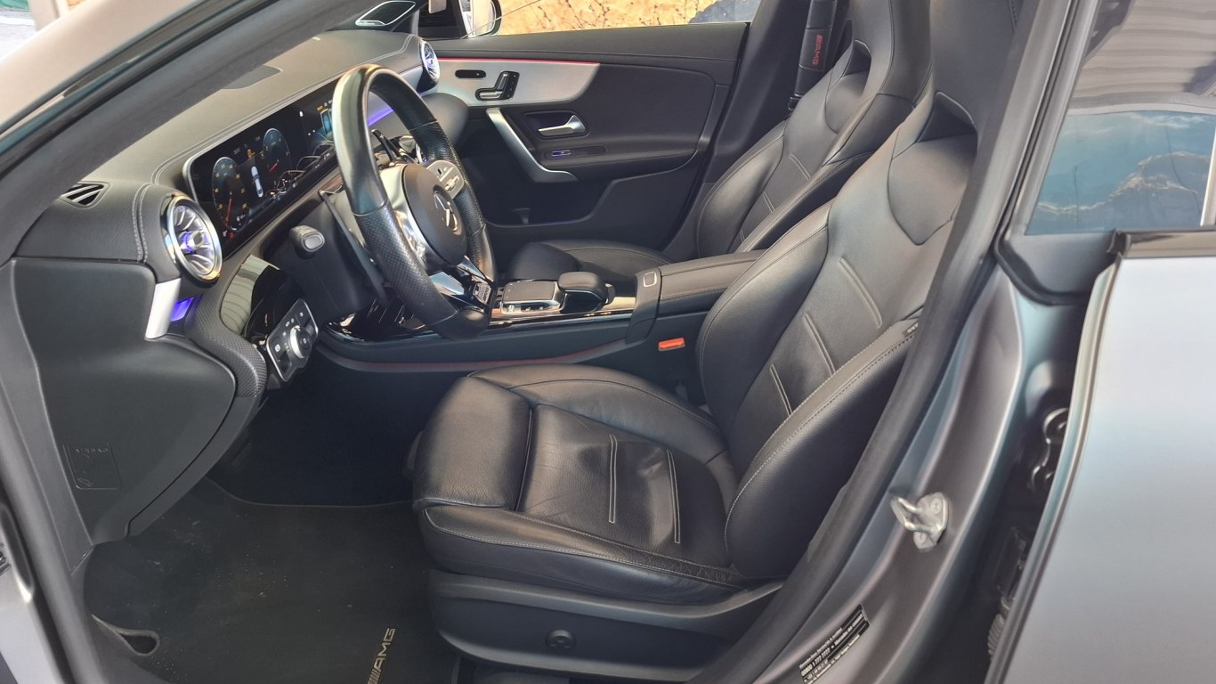 ABS, ESP, Control de Tracción TCS, Airbag de rodillas, Windowbags, Airbags frontales para conductor y acompañante, Control presión neumáticos, ATTENTION ASSIST, Airbag lateral para conductor y acompañante (airbag combinado de tórax y de cadera), Detector activo de cambio de carril, Llamada de emergencia Mercedes-Benz, Desconexión automática del airbag del acompañante, Servofreno de emergencia activo, Attention assist (Sistema de alerta por cansancio conductor), Asistente de frenado activo con función de girar, Cámara de marcha atrás, Elevalunas eléctricos delanteros y traseros, Sensor de lluvia, Función de parada y arranque ECO, Asistente para viento lateral, Cierre centralizado, Alfombrillas de velours negro con ribete en el color del equipamiento y distintivo «Mercedes-Benz», Función de arranque KEYLESS-GOSERIETEMPOMAT con limitador variable de velocidad, Freno anticolisión múltiple, Símil de cuero ARTICO /Tela Fleron, Apoyabrazos abatibles en consola central para conductor y acompañante, Caja de enchufe de 12 V en el compartimento portaobjetos, Iluminación del compartimento de carga (maletero), Portavasos doble, Portavasos doble y guantera (sin cerradura), Símil de cuero ARTICO / tela Bertrix negro (311A), Dirección directa, Paquete de alumbrado y visibilidad, Símil de cuero ARTICO /Tela Fleron, Símil de cuero ARTICO /Tela Fleron, AMG Line, Listones de umbral con distintivo Mercedes-Benz, Tirefit con compresor para inflado de los neumáticos, Elementos de adorno con efecto carbono, 8G-DCT cambio automático de doble embrague, Llantas de aleación de 45,7 cm (18′) y 10 radios dobles color negro brillante y pulidas, Compartimento de gafas para conductor, DYNAMIC SELECT con los programas de conducción ECO, Comfort, Sport e Individual, Guantera con cerradura, Airpanel, Faldón trasero de dos piezas con sección inferior destacada en efecto difusor color negro mate, Faldones laterales del color de la carrocería, Línea Progressive, Cambio automático 8G-DCT, Eje trasero con multibrazo, Tren de rodaje de confort y altura rebajada, Parrilla de efecto diamante y pasadores en negro, lama individual pintada en color plata e inserto, Listón de adorno en la línea de cintura y en la línea de las ventanillas en cromo, Línea Progressive, Multimedia y AudioIndicador velocidad límite, Toma USB en el compartimento portaobjetos del apoyabrazos delante y 2 tomas USB (de carga), Módulo de comunicación (LTE) para el uso de los servicios Mercedes connect me, Preequipo para radio digital, Sistema multimedia MBUX; Connect 20 que incluye preequipo para navegación (355) y Touchpad (446), Radio digital (DAB), Indicación de estado de los cinturones de seguridad en el cuadro de instrumentos, Preequipo para Live Trafic Information, Preequipo para Car Sharing, Servicios de acceso remoto, Preequipo para entrega digital de llave (3 años de uso gratuito a partir de la fecha de activación