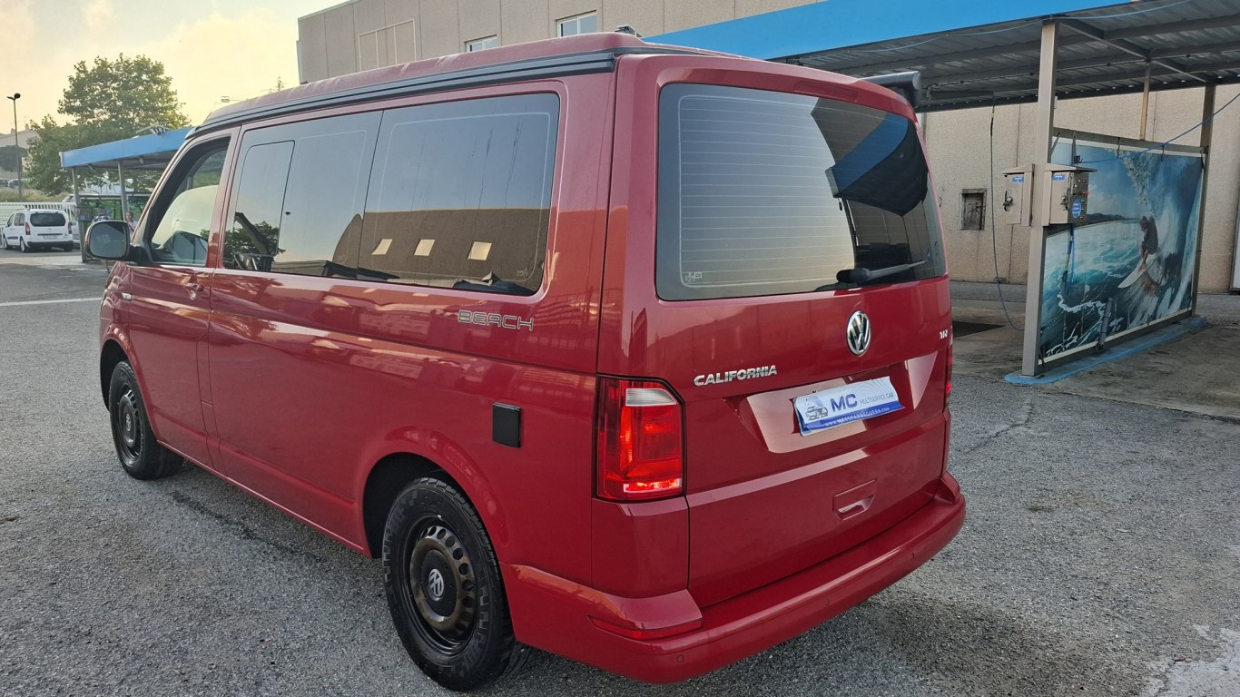 Elevalunas eléctricos delanteros, 2ª batería con relé separador libre de mantenimiento, Alzacristales eléctrico, Apoyo lumbar asientos individuales izquierdo y derecho en 1ª fila asientos (ambos ajuste manual), Asideros (plegables y amortiguados) en el bastidor del techo, Bloqueo/desbloqueo eléctrico de la cerradura del portón trasero con de desbloqueo por control remoto, Calefacción de aire estacionaria programable, Conexión intervalos de barrido del limpiaparabrisas con sensor de lluvia limpiaparabrisas delantero, Dirección asistida con columna de dirección de seguridad, con ajuste de altura y longitud, Enchufe(s) de 12 voltios, Filtro de polvo y polen, Iluminación del escalón de entrada, cabina y puerta(s) corrediza(s), Iluminación del los instrumentos, graduable, Recubrimiento del suelo de moqueta reforzada en el habitáculo, Retrovisor interior de seguridad, con ajuste automático de posición antideslumbrante, Revestimiento de puertas sin pintar, Sistema de arranque-parada con recuperación de la energía de frenada, Ventanilla corrediza delante y ventanilla fija detrás, en zona de carga/habitáculo, a la derecha, Ventanilla corrediza delante y ventanilla fija detrás, en zona de carga/habitáculo, a la izquierda, Asiento derecho giratorio, con apoyo lumbar (sin ajuste de altura) en 1ª fila de asientos, Banqueta 2 asientos/cama (3ª fila), desplazable y abatible para cama 2 plazas (con cama acolchada), Cama de techo, Iluminación del escalón de entrada con inscripciones California, Parasoles de tela, para la cabina del conductor, Portaobjetos de puerta con 2 compartimentos con portabotellas integrado y alfombrillas en la cabina, Preparación para el montaje posterior de un asiento individual, en la 2ª fila asientos, Prolongación cama (Beach: ensanchamiento cama incluido comparti portaobjetos) incluye revestimiento, Refrigerador con compresor ‘Waeco’ (42 l aprox, Reposabrazos en los asientos delanteros, ambos lados, con apoyo lumbar eléctrico y mesa plegable, Revestimiento de los laterales del habitáculo Camper, Revestimiento de plástico en el habitáculo, Revestimiento de puertas, Revestimiento del techo para Camper, Revestimiento lateral California Beach, Sistema de iluminación interior Camper en el habitáculo, Ventanilla corredera con mosquitera en el habitáculo, delante izquierda, 2 llaves plegables con control remoto, Alternador trifásico 180 A, Asiento izquierdo giratorio, apoyo lumbar y sin regulacion de altura 1ª fila asientos, Batería 380A (68Ah), Cierre centralizado con control remoto y accionamiento desde el interior, Climatizador Climatic en la cabina y 2ª calefacción en el habitáculo, Mueble empotrado con inserciones ‘Dark Wood’, Regulador de velocidad, Tapizado de asientos en tela, diseño Pilion, nserciones: moldura decorativa ‘Dark Silver Brushed’, banda decorativa en ‘Antracita metalizado’, Techo deflector aluminio (manual) color carroceria (Edition negro mate), 2 ventanas later, Equipamiento parcialmente en cuero (pomo palanca de cambio en cuero), Luneta trasera (luna normal, térmica) con limpiaparabrisas de la luneta trasera, Multiflexboard acolchado (si existe, se elimina la bandeja del maletero), Filtro de alérgenos, Techo levadizo manual, con 2 ventanillas, fuelle en Alpin Grey, Faros delanteros antiniebla y luz de giro, Activación automática luces marcha,luz marcha diurna, función Leaving home y func, Airbags laterales y cabeza para conductor y acompañante, Bloqueo de marcha electrónico, Luces traseras en acabado estándar, Programa electrónico estabilización con servofreno, ABS, ASR, EDS y asistente arranque en pendientes, Regulación alcance faros, Reposacabezas antilatigazo, Seguro para niños en las puertas corredizas del habitáculo, Airbag conductor y acompañante, desconexión airbag acompañante, tensor cinturón asientos exteriores, Anclaje de asiento para niños ISOFIX y Top Tether para Multivan/California en la 2ª-4ª fila asientos, Detector de fatiga, Faros dobles halógenos, Faros halógenos, Luz antiniebla trasera, Testigo de control de los neumáticos, Tapacubos de 16´´, 4 Llantas de acero 6 1/2 J x 16 en diseño de 20 orificios, 4 Llantas de acero 7 J x 17, Asidero para entrada en el montante A, en el lado del conductor y del acompañante, Portaobjetos de puerta con 2 compartimentos con portabotellas integrado en la cabina, Protección de cantos en el maletero de plástico, Suspensión y amortiguación (estándar), Tren de rodaje de 16´´ con sistema de frenos de 16´´, Red portaobjetos apertura sub, Argollas de amarre para la sujeción de la carga con revestimiento de suelo protección antirroce, Asistente para descenso y arranque en pendientes, Control de asistencia para arranque en pendientes, Inserciones: moldura decorativa Dark Silver Brushed, banda decorativa en Paviano Black, Normativa de emisión de gases Euro 6 (para TDI con filtro de partículas diésel), Rueda de repuesto de acero con neumático normal, incluido gato, Tablero de instrumentos con consola central estrecha, Tablero de instrumentos con consola central ancha y portabebidas, Bisagras para las puertas traseras/ portón del maletero en versión normal, Portón de maletero con apertura para ventanilla, Banqueta de 3 plazas (desplazable) con posición para tumbarse y compartimento portaobjetos, 3ª fila, Norma de emisiones de gases de escape Euro 6d TEMP-EVAPSERIE2 papeleras para portaobjetos de puertas en cabina, 3 cajones debajo banqueta de 3 plazas en habitác, Paquete fumador, Botiquín y triángulo de preseñalización, Centro de llanta, Con enchufe delante, Guía izquierda, Herramientas de a bordo y gato, Peso total permitido 3SERIESeñal acústica y luminosa cinturón seguridad conductor no abrochado, Primer llenado del combustible de serie aumentado (16 l), Voltaje de servicio 12 V más 230V conversor de tensión, Circulación por la derecha, Indicador de intervalos de servicio 40000 Km o 2 años (variable),